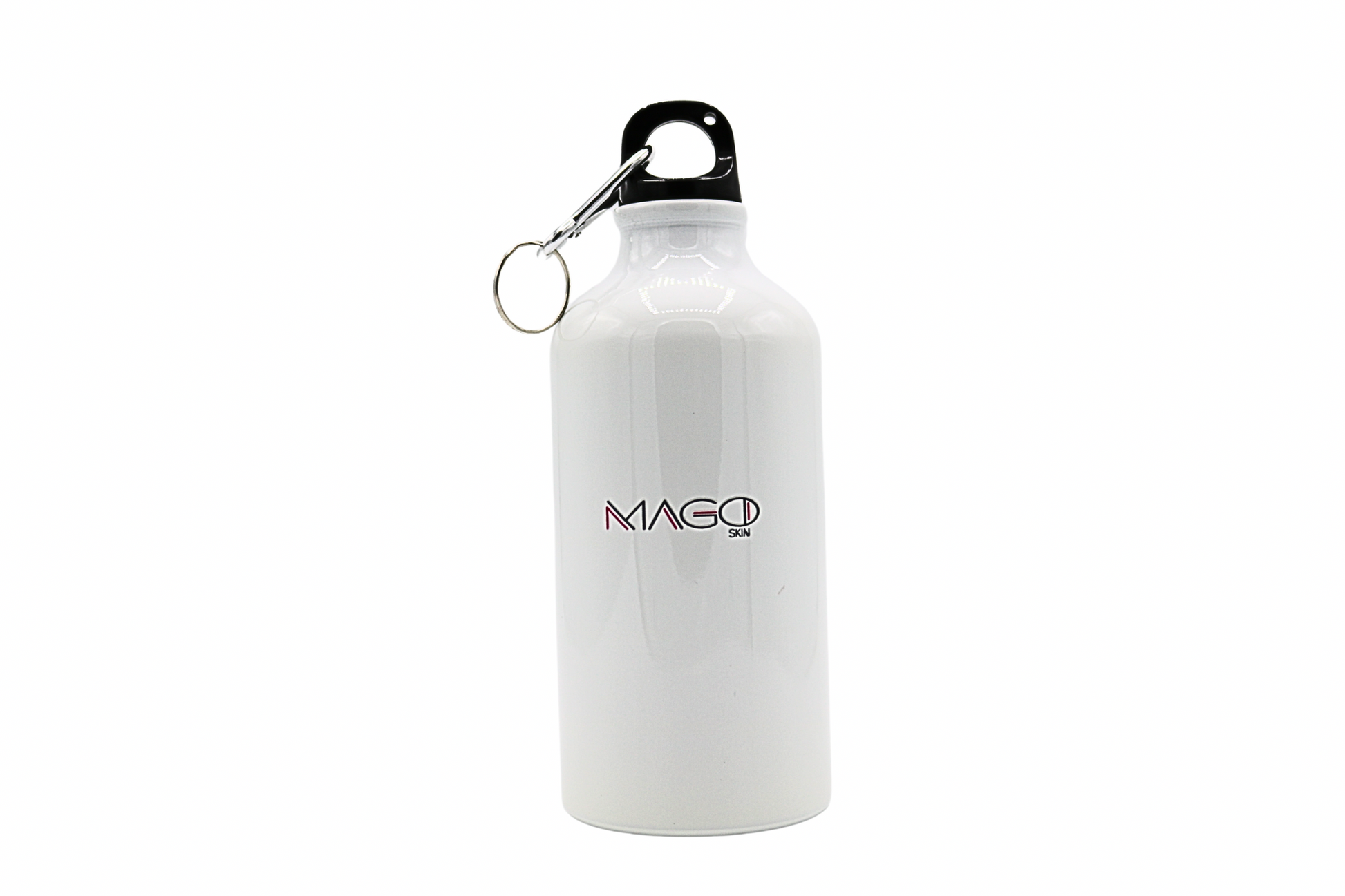 borraccia in alluminio con tappo a vite. moschettone e anello per le chiavi.